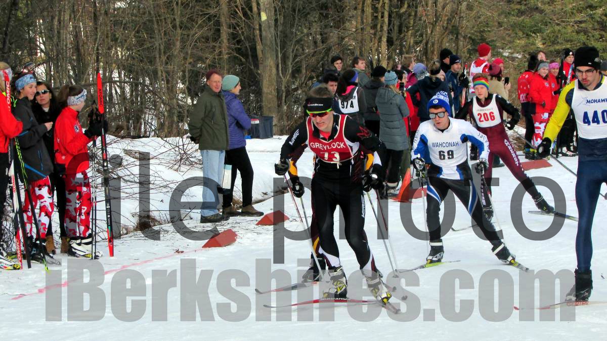 In the girls race, Mohawk Trail’s Erika Looman finished first, skiing out of the first wave and finishing in 19:12, 15 seconds ahead of fellow first-wave starter Brandi Gill of Mount Greylock and 10 seconds ahead of runner-up Elizabeth Dupras of Mount Greylock, who started out of the sixth wave.