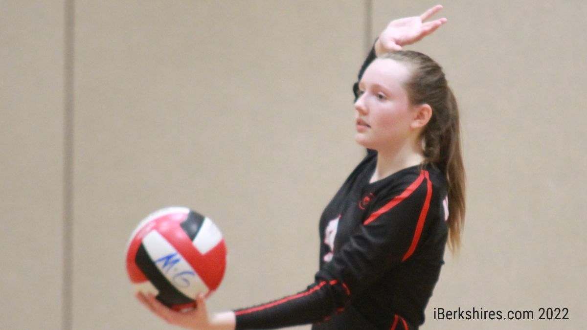 WILLIAMSTOWN, Mass. – Mount Greylock’s Kylie Sweren started and ended Tuesday’s Western Massachusetts Class D quarter-final match with long service runs as the Mounties rolled over Pioneer Valley in three sets on Tuesday evening.