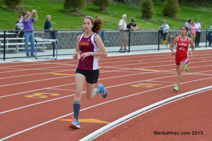 1600 METER RUN -- 1. Emma Jourdain, Lenox, 5:30.10; 2. Margo Smith, Mt. Greylock, 5:33.80; 3. Alice Najimy, Lenox, 5:35.30; 4. Arden McKnight, Wahconah, 5:44.20; 5. Kayla Dillon, Monument Mt., 5:54.50; 6. Emily Lescarbeau, Mt. Greylock, 6:00.00.