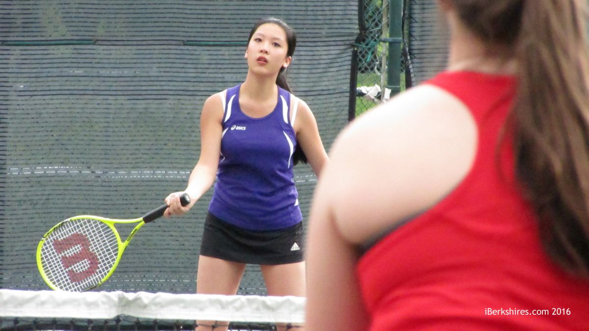 In the girls match, Mount Greylock’s Cedar Keys and Charlotte Sanford battled to a third set before succumbing to Julian Catalano and Zhen-Mei Huang, 6-2, 4-6, 6-0.