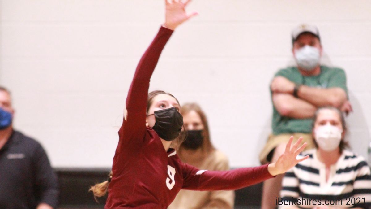 In the fourth, Mount Greylock took control with a six-point service run by Kylie Sweren to turn a one-point deficit into an 11-6 lead that Mount Greylock never relinquished. A three-point run by Lanie Gill pushed the Mounties’ advantage to 17-8, and the serve came back around to Sweren, who closed out the set with an ace to force the deciding fifth set.