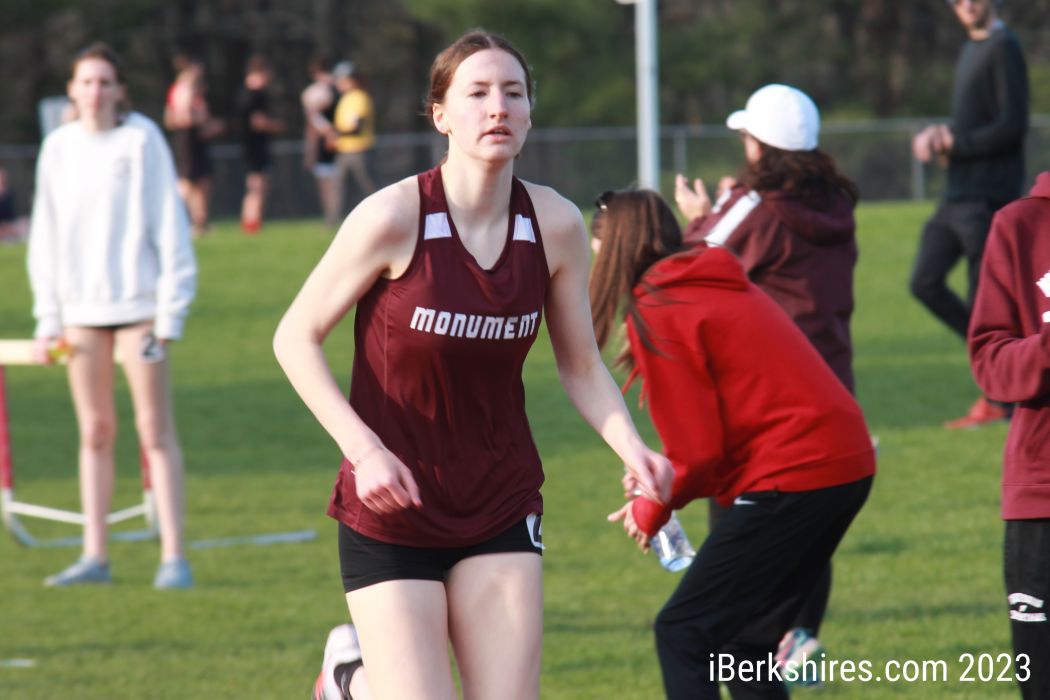 4-by-400 relay: 1. Mount Greylock (Apotsos, McDermott, Goss, Nichols), 4:32.95; 2. Monument Mountain, 4:46.10.