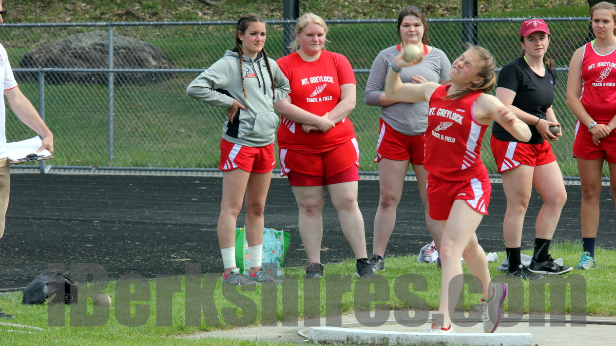 DISCUS -- 1. Olivia Bresett, Hoosac Valley, 83-7; 2. Fallon Field, Hoosac Valley, 83-4; 3. Shelia Atiemo, Pittsfield, 80-1; 4. Lina Marcinczyk, Mt. Greylock, 79-1; 5. Bailee Duquette, Mt. Greylock, 78-1; 6. Dagny Albano, Mt. Greylock, 74-7.