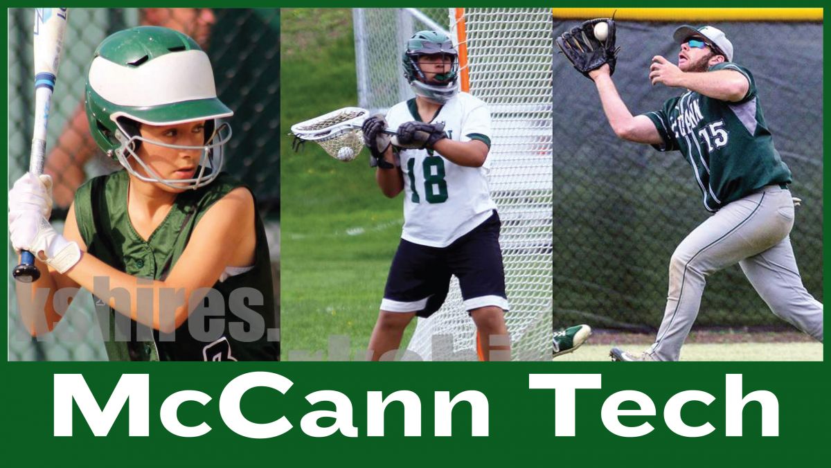 Four McCann Tech pitchers split time on the mound. Colin Booth earned the win with two innings of work. Booth struck out four and walked none.