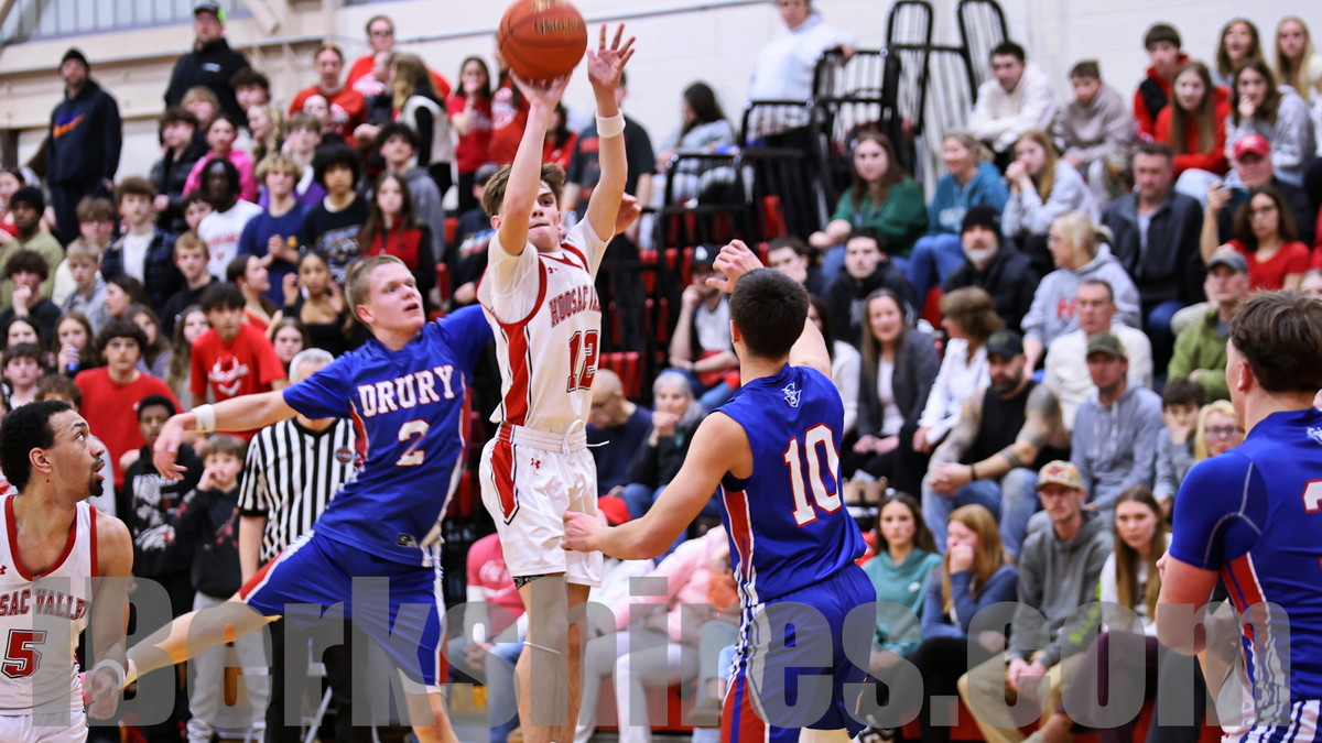 CHESHIRE, Mass. — The Drury boys basketball team (15-2) withstood a physical, back-and-forth battle before pulling away late for a 65-56 win over Hoosac Valley in a hard-fought contest.