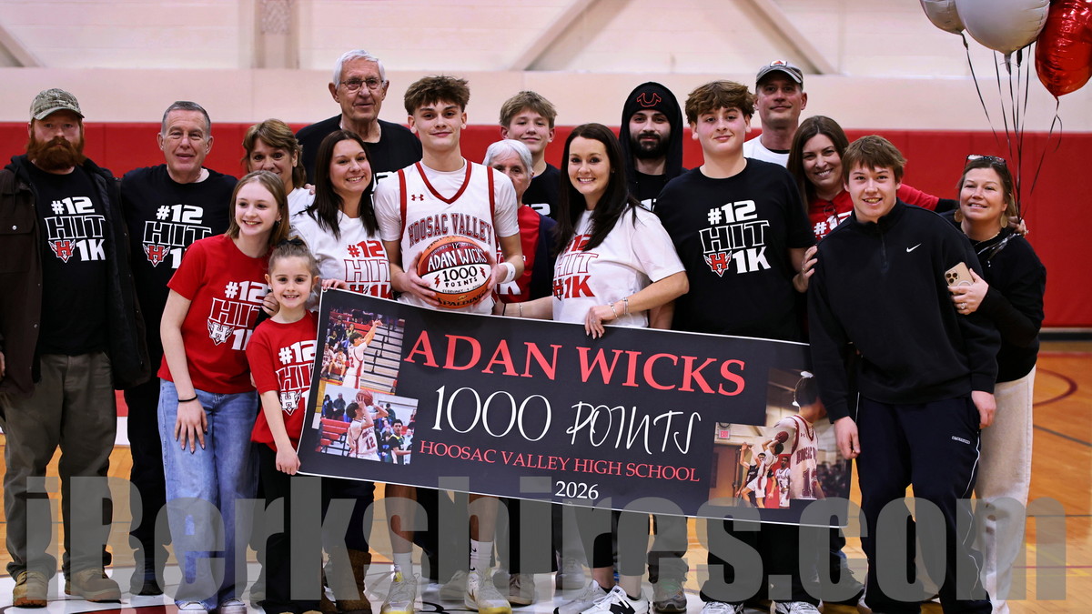 It looked like it was shaping up to be a special night for Hoosac Valley (9-7) early on. The Hurricanes jumped out to a 16-6 lead, highlighted by a 3-pointer from Adan Wicks that pushed him past the 1,000-point mark early in the first quarter. Wicks scored 10 points in the opening frame and finished with a team-high 22.