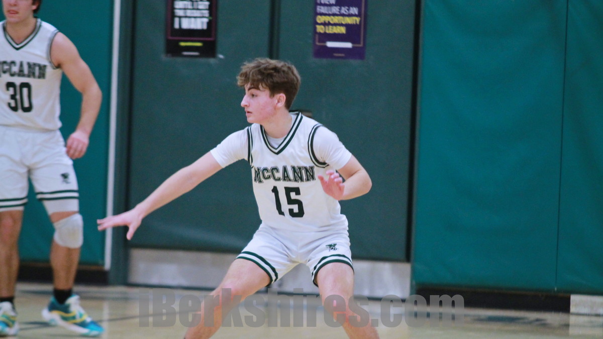 SPRINGFIELD, Mass. – Kyle Rougeau scored 14 points to lead three McCann Tech players in double figures as the Hornets beat Libertas Academy Charter, 60-54 on Wednesday, for their first win.