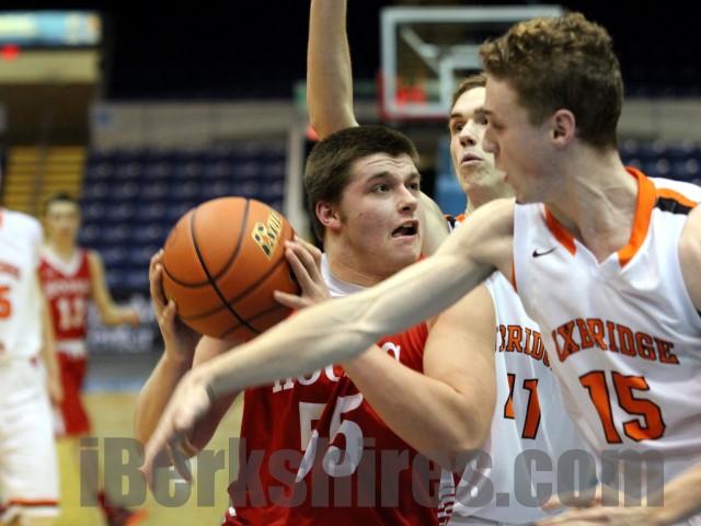 Hoosac misfired on its first shot, but Koperniak (15 points) grabbed a looseball rebound near the foul line to reset the shot clock. Then Uxbridge managed to tip the ball out of bounds over the baseline with 1.2 on the clock, setting the stage for Coughlan's heroics.