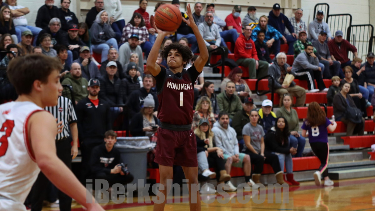 GREAT BARRINGTON, Mass. – Manny Brown scored 24 points, and the Monument Mountain boys basketball team Monday set a school record with 71 first-half points en route to a 105-42 win over Belchertown in the Western Massachusetts Class B quarter-finals.