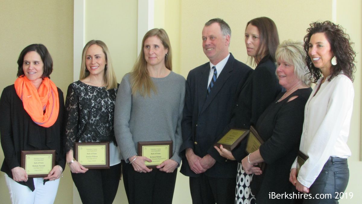 Her fellow Lee Wildcat, Jessica Wilcox, joined her, along with Taconic’s Tammy Tobin and Kelly Daigneault, Monument Mountain’s Kristen Kinne and Pittsfield’s Judy Tierney and Tina Sottile. Joining the former players were former Drury High coach Irene Bianchi and, as a contributor to the game, Dalton Community Recreation Association Director of Social Programs Dan McMahon. All but Tobin and Bianchi were on hand to be recognized for the honor.