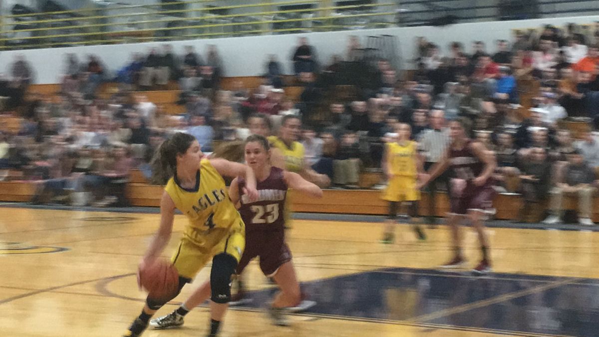 Madeline von Ruden scored in transition to push the Eagles’ lead to 18-15, but Meri Powell (seven points) answered with a bucket in the post on a pass from Maya Cooney to again make it a one-point game.
