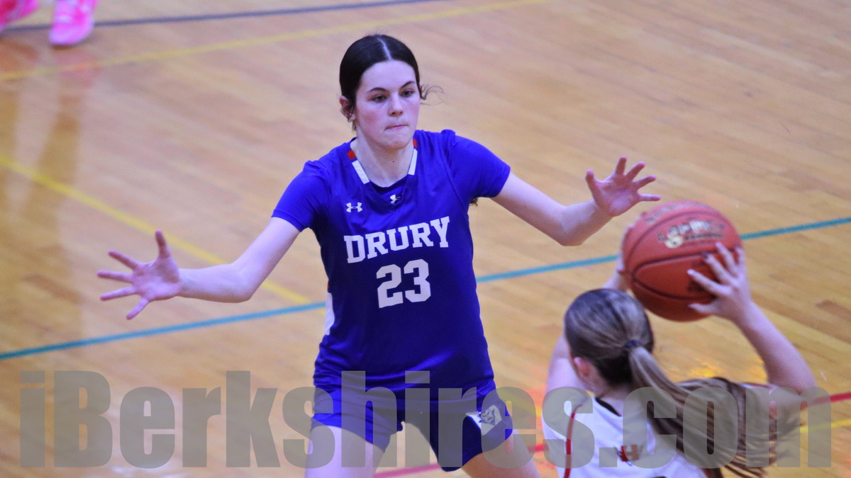 GREAT BARRINGTON, Mass. – Lily Mirante and Eva Moser each scored 10 points Tuesday to lead the Drury girls basketball team to a 52-22 win over Monument Mountain.
