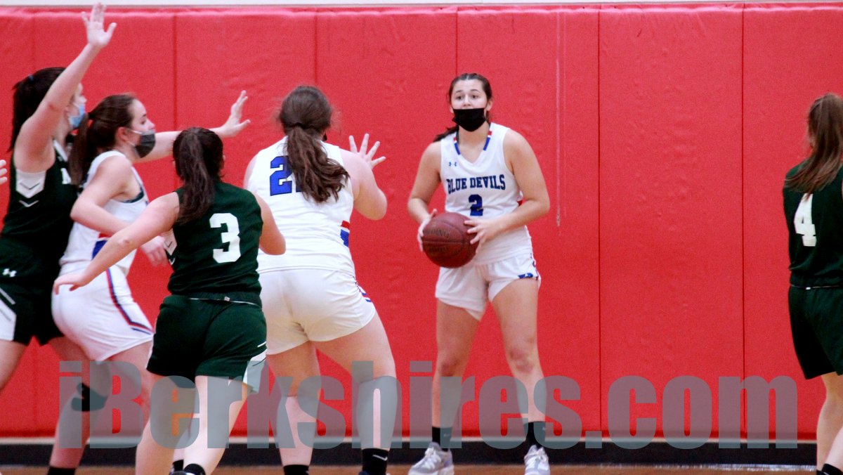 NORTH ADAMS, Mass. -- Kayla McGrath scored 20 points Monday to lead the Drury girls basketball team to a 48-42 win over Belchertown in the Blue Devils' season opener.