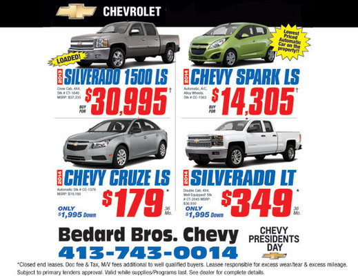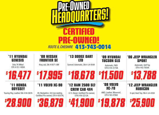 Check out our Presidents Week Sales Event! Visit us at Bedard Bros. Auto Sales Inc. in Cheshire where we sell and service Chrysler, Jeep, Dodge, Ram, Honda, and Volvo automobiles and keep a large inventory of top notch pre-owned vehicles. Located beside Cheshire Lake at the foot of Mount Greylock, surrounded by the Appalachian Trail, it's hard to imagine a prettier spot to shop for an automobile.