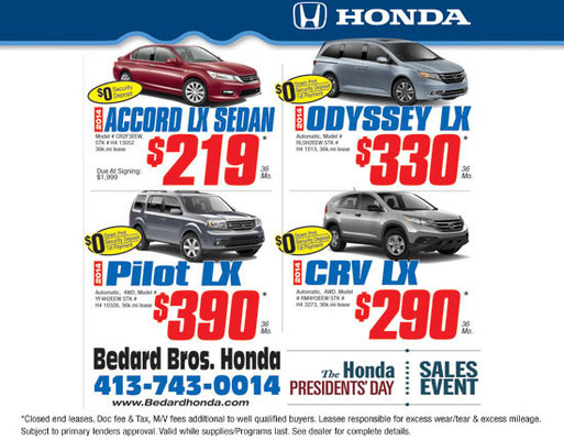Stop over now and check out the Honda Presidents' Day Sales Event. Find great deals on all the Hondas you love, including the Accord LX Sedan and Honda Odyssey LX.