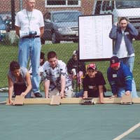 | Racers, or "senders," hold cardboard over their solar panels as the start of the race is counted down. (Photo by Deborah Rawson) |