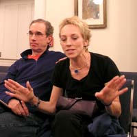 | Elena Powell makes an emphatic point during a recent meeting at Town Hall, while her husband, Edwin, listens. (Photo By Claire Cox) |