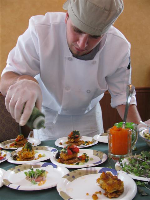 Nearly a 100 restaurants, hotels, home improvement, shops, home goods, printers, banks, health providers, technology businesses and others participated in the first Buy in the Berkshires Expo at Jiminy Peak. Above, Everett Morin of the Crowne Plaza finishes off crab cakes. |