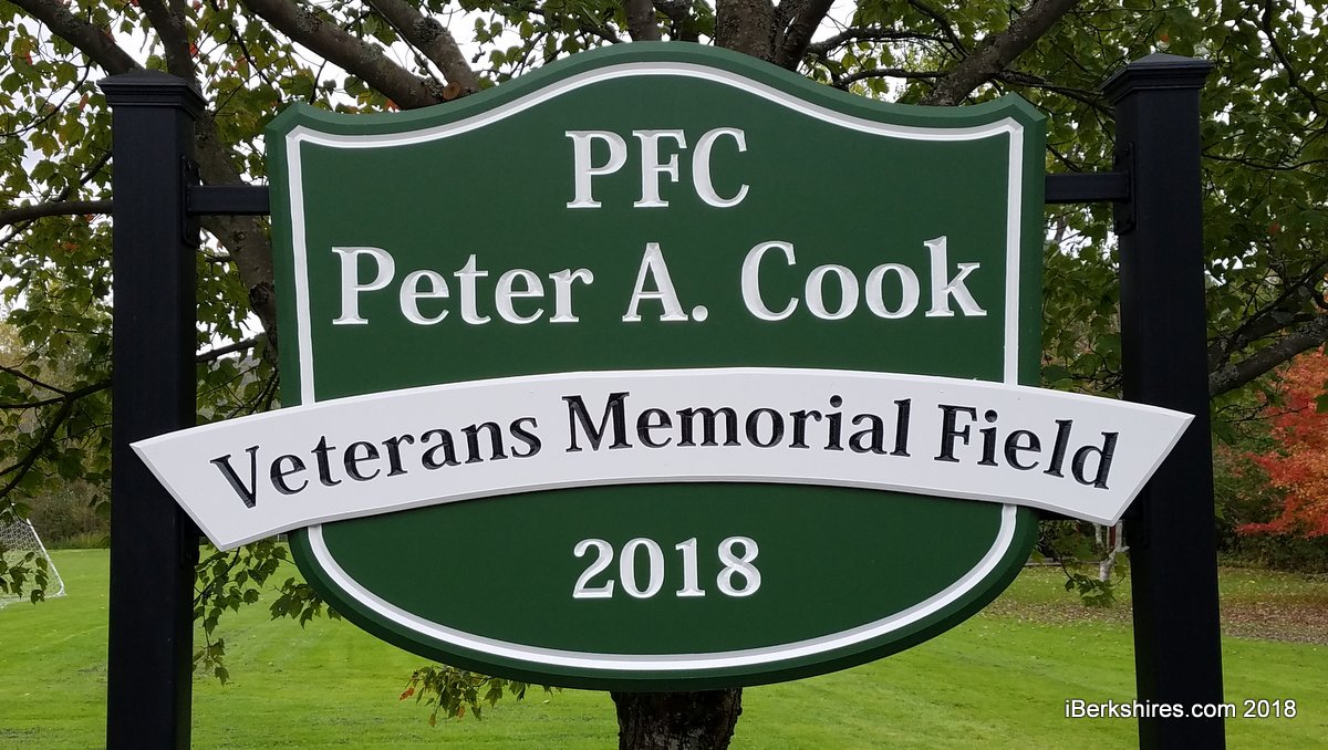 Town meeting voted to rename the field last December to memorialize Cook and the town's veterans and the local Veterans of Foreign Wars chapter, also named after Cook, raised the funds to install the sign.
