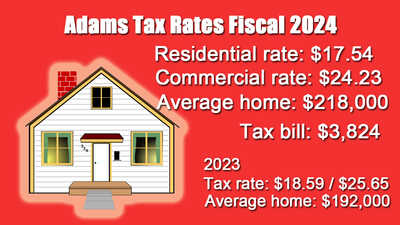 Dalton Town & Fire District Set Tax Rates for FY26The Select Board voted to maintain a single tax rate, as it has done historically, during its meeting on Monday night. Pittsfield Council Sets FY26 Tax RateThe City Council has set the fiscal year 2026 tax rate: $17.50 per $1,000 of valuation for residential property and $36.90 for commercial, industrial, and personal property. North Adams' Average Tax Bill Climbs $126; McCarron Sworn in as CouncilorThe City Council on Wednesday approved a split tax rate that maintains a shift of 1.715 to business and commercial properties. Pittsfield Tax Rate Drops, But Bills May RiseThe administration has presented a split rate that would increase the average single-family home's annual bill by about $220. Lanesborough Tax Rate Up 3%The Select Board has adopted a single tax rate that will increase the average homeowner's annual bill by about $350. Clarksburg Has Buyers for Cruisers; OKs Exemption Income HikeThe board had voted to dissolve police department in March and rely on the State Police. The two cruisers, including one purchased in 2021, have been taking up space in the garage ever since. Berkshire Village Owners Owes Cheshire Back TaxesIn addition to residents complaints about Berkshire Village's deteriorating condition, the mobile home park also owes the town roughly $21,000 in back taxes. Divided Williamstown Select Board Implements Senior Tax ExemptionThe annual town meeting overwhelmingly supported the home rule petition, which was waiting on approval from the legislature and the signature of the governor before the local property tax relief plan could be put into action. Williamstown Expects Spike in Property Taxes in FY26No details were revealed about the town's fiscal year 2026 spending plan at Monday's joint meeting of the Select Board and Finance Committee. But it was apparent that FY26 budget will require a significant increase in the property tax levy in the year that begins July 1. Clarksburg Sets Tax Rate; Interviews TA CandidateThe Select Board on Monday night voted after a tax classification hearing to again maintain a single tax rate. Members also interviewed the first candidate for the town administrator post, former Select Board Chair Ronald Boucher. Dalton and Fire District Set Tax Rates for FY25The Select Board voted to maintain a single tax rate, as it has done historically, during its meeting on Monday night. Lanesborough to Mall Owners: Pay Your TaxesThe owners say they are plagued by the costs of stabilizing a rundown property that should not have gotten to its current state and cite "inhibitive" taxation from the Baker Hill Road District. Lanesborough Sets Single Tax Rate, Bills to IncreaseThe average homeowner's tax bill for fiscal year 2025 will rise about $360. Pittsfield Tax Rates Down But Values Mean Increased BillsOn Tuesday, the City Council approved a residential tax rate of $17.94 per $1,000 of valuation and a commercial, industrial, and personal property tax rate of $37.96 per $1,000 of valuation. North Adams Property Owners to See Tax Rates Fall, Bills RiseThe City Council on Tuesday voted to maintain the split tax shift, resulting in a drop in the residential and commercial tax rates. However, higher property values also mean a $222 higher tax bill. Williamstown Finance Sees Pressure on Property Tax BillsA stagnant local economy promises to put increasing upward pressure on local tax bills. Williamstown FY25 Tax Bills Up Slightly, Tax Rate Falls AgainThe median property tax bill for fiscal year 2025 is expected to see its lowest year-to-year increase since 2019, the Select Board learned on Monday night. |
