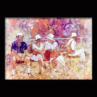| "Boardwalk Conversation" - oil by Jack Nodiff |
