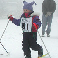 | Lillian Fisher, age 4, skis in the Lollipop division of the Prospect Mountain Bill Koch Youth Ski League. (Photo by David Dethier) |
