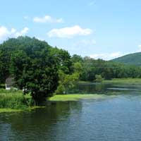 | Beavers are active in many Berkshire waterways, including the Housatonic River in Lenox, shown here above the Lenox Dale Dam. (Photo by Anthony Fyden) |