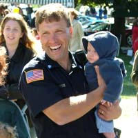 | Putting the squeeze on young suspect Michael Ward is Officer Gary Lagarce of the Lenox Police Department. (Photo By Bill Sample) |