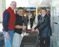 Tyler Home Supply, in Pittsfield, a locally owned and operated family business, held a Grand Re-Opening Celebration on Saturday, October 14 at their newly renovated facility. Owners Peter and Melissa Widitor hosted the event for customers, community, family, and friends to mark the completion of the store's renovation and expansion, the elevation of Tyler Home Supply to Signature Store status with Benjamin Moore Paint Company, and to commemorate the 60 years that Tyler Home Supply has been in business. The $450,000 renovation and expansion of the Tyler Home Supply True Value® store, located in Pittsfield's ever evolving Morningside section at 711 Tyler Street, was largely funded by Legacy Bank. Additional funding came from a $5,000 grant from PERC. The project scope included the addition of a new receiving area and freight elevator, a reconfiguration of the structure's two levels, and a glass-enclosed entryway to house yard and garden supplies and equipment. In addition, the store's interior has been completely upgraded with new lighting, a reconfigured floor plan, and the installation of a new color center for paint selection. Coincident with the grand re-opening, Tyler Home Supply unveiled it's new store logo and graphic look for ongoing advertising. Store employees and event volunteers sported T-shirts with the new logo. The event drew over 500 people from greater Pittsfield and beyond creating a large steady flow of customers and visitors throughout the day. Deanna Ruffer, Pittsfield's Community Development Director stood in for Mayor Ruberto who was unable to attend due to illness, City Councilors-at-Large Lou Costi and Lou Markham were also on hand to congratulate Peter and Melissa. During the ribbon cutting ceremony Peter spoke, thanking all of the people who contributed to the success of the renovation, including his hard working and loyal staff of employees. Ms. Ruffer's remarks noted the positive impact of the store's renovation in the Morningside Area and on Pittsfield's resurgence as well. This was a family event for the Widitors; their children Marcus, Nate, and Kate were on hand to help on the floor and announce prize winners. Peter's parents, Jack and Jane Widitor, who founded the store in 1946, were honored guests on this occasion. They brought archival photos of the original location to share, and met many new customers. Melissa's parents Jean and Don Johnson were also active participants. The refreshment table featured Jean's home-made chocolate chip cookies and pumpkin bars. Don was the event's official greeter, welcoming every customer and visitor at the door. One of Jean's handmade quilts, with color coordinated Benjamin Moore paint color chips, hangs as wall art in the color center. Festivities included prizes, giveaways, refreshments, and clay painting with Claymania of Housatonic, Mass. The grand prize, an MTD Yard Machine Snowblower was won by Railene Hughes of Pittsfield, Mass.