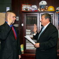 | North Adams Mayor John Barrett III delivered a police officer oath to city police Officer Zachary Wood during a Nov. 30 swearing-in ceremony. |