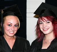 | Candice Martin, 18, of Adams, and Jessica Hume, 25, of Dalton recieved certificates last night during a Charles H. McCann Technical School graduation.[Photo by Jen Thomas] |