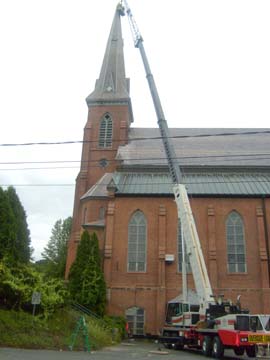Her mother had attended the parish school as a child, and worshiped in the church. She was still alive when the parish began its slow dissolution, which ended two years ago with its merger into St. Francis' Church. "But this, this would have broken her heart," said Cook, as the copper cross was lowered earthward by a large crane.