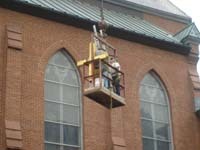 | Steeplejacks David Galipeau and John Bergeron bring the cross down from Notre Dame's steeple.View Slide Show |
