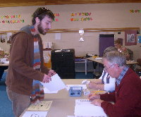 | Chad Therrien votes at St. Anthony's Parish Center on Tuesday. |