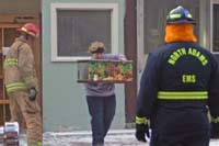 Williamstown Fire Department sent two vehicles, including a ladder truck, and firefighters; Adams firefighters were also on the scene. Clarksburg firefighters covered the North Adams station. North Adams Ambulance Service also assisted.<R5>