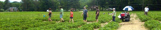 Above, Kim Weslowski leads a group to a patch of strawberries.