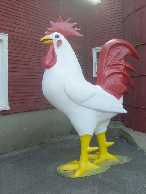 But the rooster, a kitschy icon of mid-century roadside America, always looked a little out of place on the revamped and expanded building. And as the property went downhill, so did its trademark fowl. A photographer of roadside memorabilia took a picture of it in 2005, showing the large hole in its side.