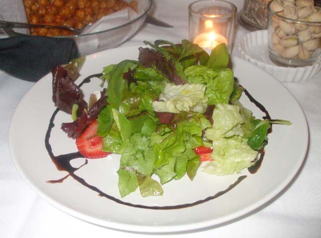 A salad special touted as "local greens with goat cheese, strawberries and balsamic syrup" was the only starter that fell flat, both aesthetically (for some unknown reason, the chef decided to put the greens on top of the strawberries and goat cheese rather than the other way around, making for a rather colorless presentation) and taste-wise (while the greens could not be faulted, the dressing was less of the promised syrup and more of an ordinary vinaigrette).