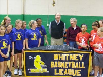 DeSanty's sentiments have been shared by the hundreds of young girls who have played in the league over the years under the watchful eyes of the Whitneys. In a letter read by league official Glenn Boyer, former player Lauren Hobbie-Welch told how she once had dreamed of Michael Jordan walking through the gym doors only to realize "the people who really mattered walking though those gym doors were Margaret and Myles ... they were the ones to see our potential."Mayor John Barrett III told the Whitneys that the city would provide $1,000 toward the new Whitney Basketball League in honor of their devotion. Communities thrive when their citizens get involved not just to make a difference for today but for future generations, said Barrett, and that's what the Whitneys have done in providing an outlet for the area's young girls.