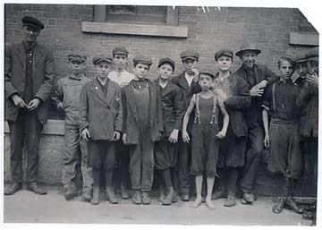 Child labor was common at the turn of the last century. These boys worked at the Eclipse Mill on Union Street, now occupied by high-end condominiums. Check out the young tough smoking a pipe. |