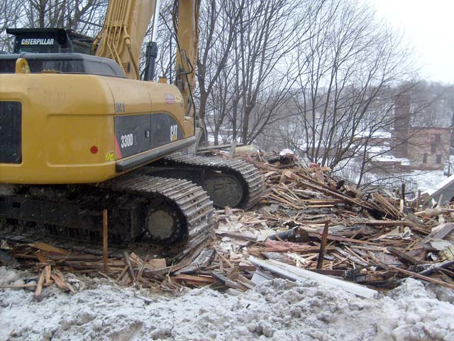 The East Main buildings had been vacant for several years and in extremely poor condition. Workers began dismantling parts of the buildings last week. Their demolition was done fairly quickly Monday afternoon.