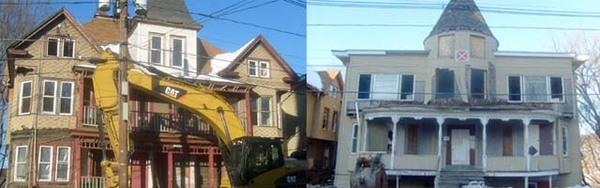 The two apartment houses at 223-225 and 229-231 East Main St., were owned by tenement mogul Charles "Rusty" Ransford. The buildings were on a list of blighted properties handed to the City Council last year by Mayor John Barrett III.