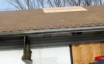 ![]() A patched hole in the roof where firefighters vented the blaze. |