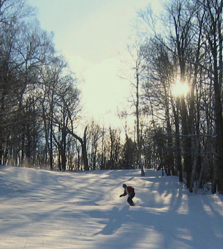 A short ride on the 1,350-foot rope tow gives access to the downhill trails or a take-off spot to ski cross county and see the area. There are 17 groomed trails for all levels of skiers, a shorter 600-foot rope tow and safe off-trail areas for the more advanced skier or telemarker who wants to find glades or fresh snow. (Telemark is a turning technique used in Nordic skiing.)