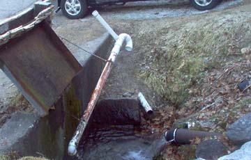 The spring's had a tough year from misuse — its four PVC spouts that brought water up to the sidewalk were broken off in the fall by people trying to fill up water-cooler-sized jugs; in December, numerous plastic jugs tossed or fallen into the culvert that links the spring to the Hoosic River caused a 15-wide stream of water to pour over the road, leaving an icy mess.