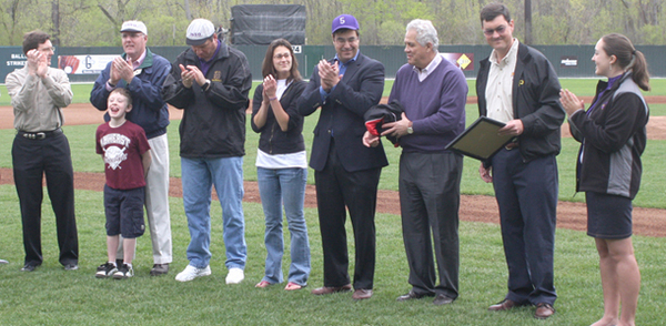 While Nutting is very familiar with both the Berkshires and the Amherst-Williams rivalry, there were other people who were experiencing it for the first time on Sunday. Mike Gustafson, a representative from the College Baseball Hall of Fame, came all the way from Lubbock, Texas, to acknowledge the historic event.