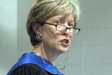 Labor and Workforce Secretary Suzanne M. Bump brought greetings and congratulations from Gov. Deval Patrick. She praised what President Mary K. Grant had done in her time at MCLA, saying Grant had "captured, integrated and advanced the essential elements of a 21st-century education."