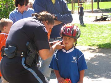 The Police Department was fitting children with bicycle helmets. Liz Haight, the department's administrative assistant, said 125 helmets were ordered through a grant.