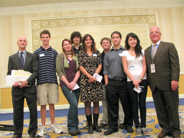 Students from Monument Mountain Regional High School took audience questions and keep the candidates on time. They stopped to pose with John Garb, left, and Sherman Baldwin, right. |