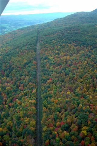"When you see things from the air, you feel like you are the only one who knows that it's here besides the guy who built it," said Cahoon. Along the way, he pointed out many "hidden" sites, including a house being built up a small road not far from Steinerfilm in Williamstown; a maze that aerially depicted a tree, pig and other animals; the mansion of Mount Hope in Williamstown; Berkshire East ski slopes from above and the spectacular beauty of the fall foliage on a large scale.